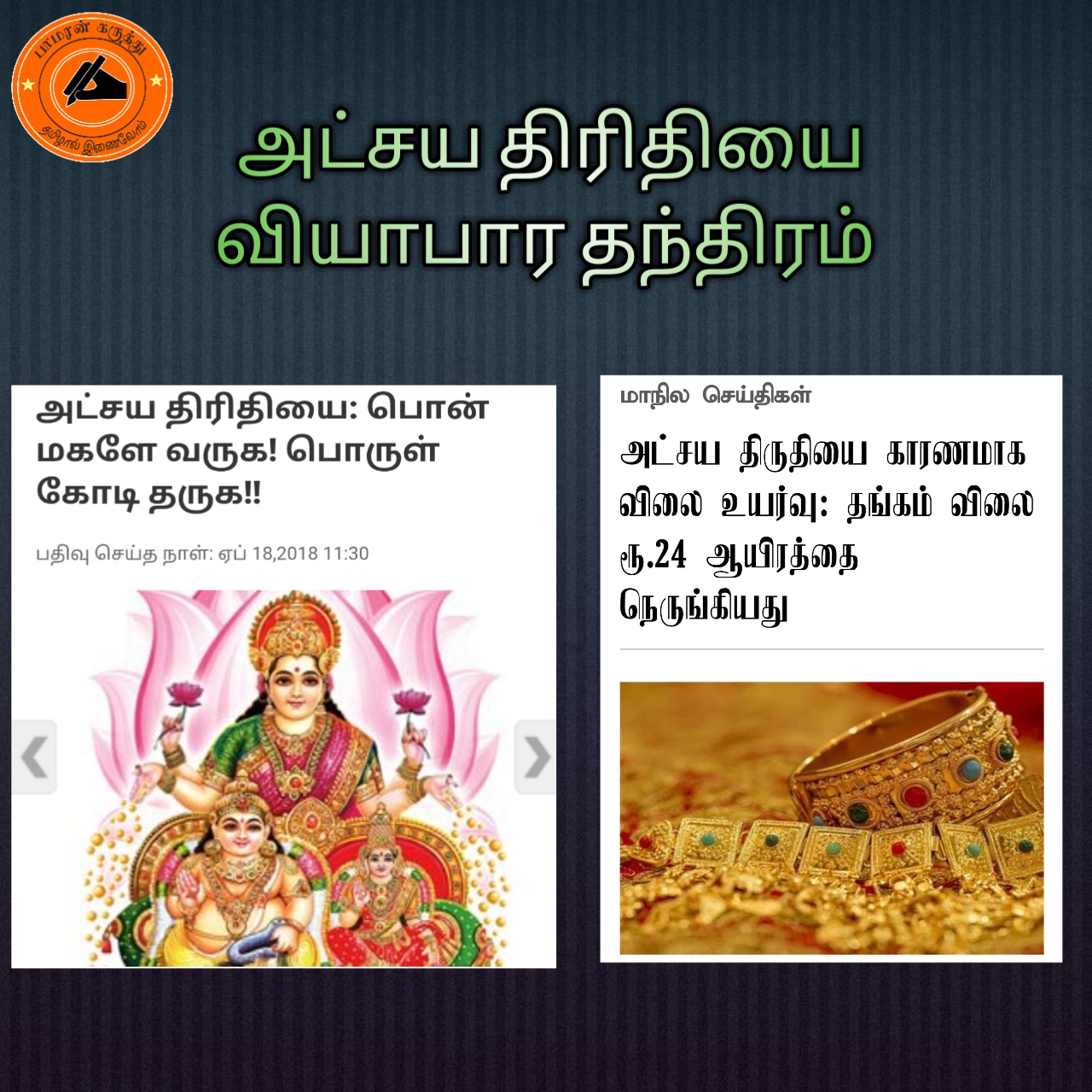 நாத்தனாளுக்கு பச்சை சேலை , ஆடி தள்ளுபடி போன்ற வியாபார தந்திரவரிசையில் முன்நிலை வகிக்கின்றது அட்சய திரிதியை .